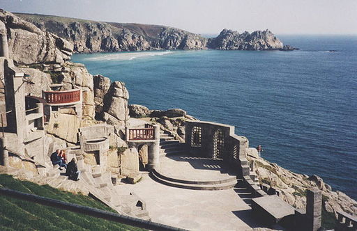 Minack Theatre - ist Cornwalls weltberühmtes Open-Air-Theater. Die Sommersaison des Theaters läuft von Mai bis September und Präsentieren Dramen, Musicals und Opern. Viele Besucher kommen zum Minack Theater und denken dass es durch die einfallenden Römern erbaut wurde. Falls Caesars Legionen so weit kamen waren sie bestimmt betört durch die Schönheit des Ortes. "Minack" bedeutet in Cornish "felsiger Ort" und die schwarze Spitze des Felsens unterhalb des Theaters hat schon immer die einheimischen Fischer angezogen. Bis in die 1930er Jahre wuchs Ginster in der Schlucht, nur das Echo der Möwenschreie war zuhören und keine Schauspieler.